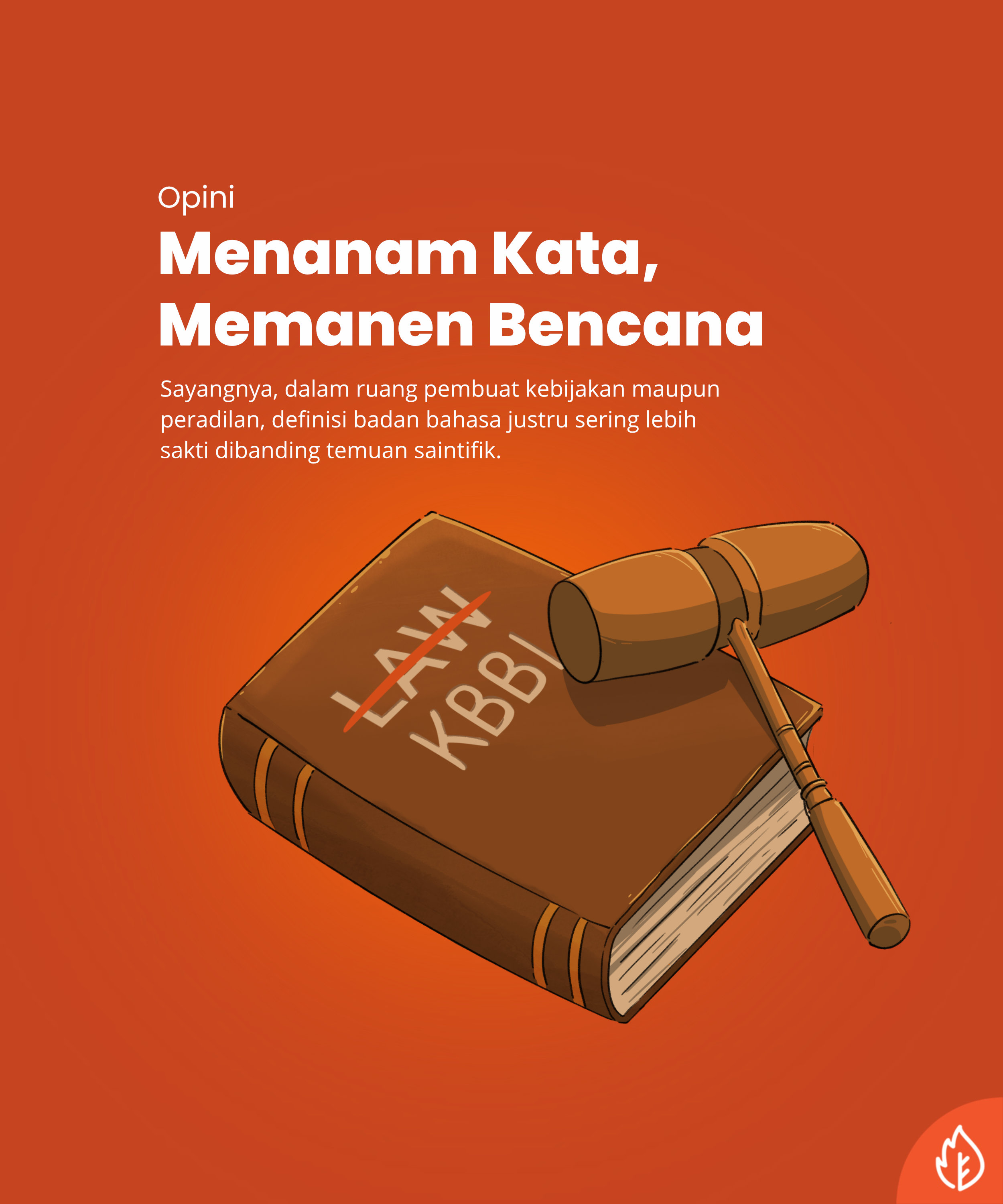 Kamus seharusnya menjadi cermin realitas, bukan alat pencuci dan pelicin dosa ekologis. Jika bahasa terus dimanipulasi untuk menjustifikasi perusakan alam, maka kita tidak hanya sedang krisis lingkungan, tapi juga sedang mengalami kebangkrutan nalar. Mendisrupsi narasi tidak akan membasahi kembali gambut yang sudah kering atau mendinginkan bumi.